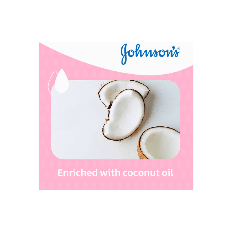 Johnson’s Baby Lotion 500ml enriched with coconut oil provides 24-hour moisture for delicate skin. Hypoallergenic, dye-free, and clinically proven mild for daily baby care.