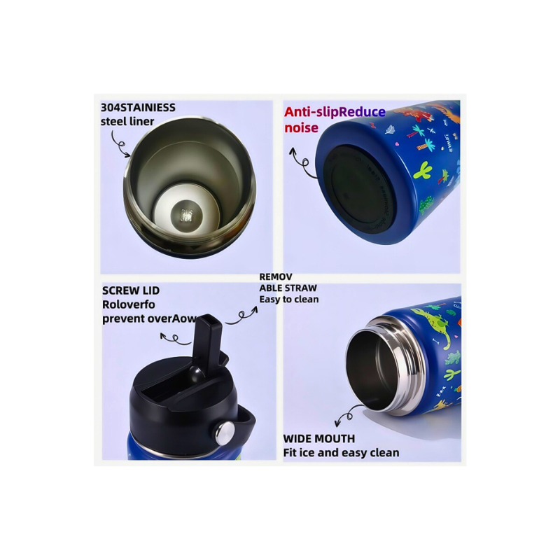 With double-wall vacuum insulation, it keeps drinks hot for up to 12 hours and cold for up to 24 hours, making it perfect for school, travel, or outdoor activities. The leakproof screw lid and anti-slip base ensure no spills, while the removable straw and wide mouth make it easy to clean and add ice cubes.