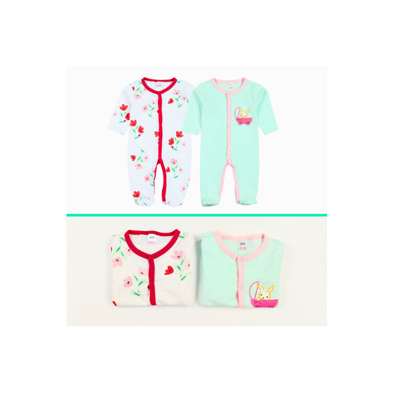 Newborn To 12m Baby Cotton Rompers 2 Pack – Soft & Breathable