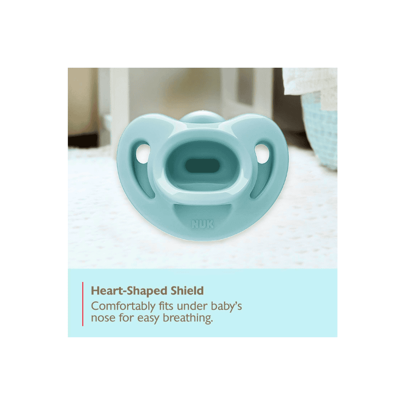 NUK Timeless Comfy Pacifier 0–6 months features a breast-like orthodontic nipple, 100% medical-grade silicone, and a heart-shaped shield for gentle newborn comfort.