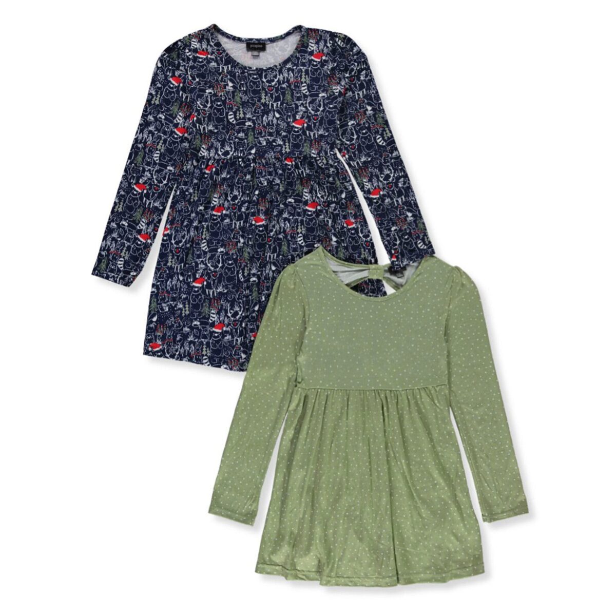 Picapino Girls’ 2-Pack Long-Sleeved Dresses Green