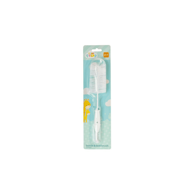Tiny Steps Bottle & Teat Brush is a 2-in-1 cleaning tool with soft bristles for bottles and teats. Gentle, effective, and easy to use.